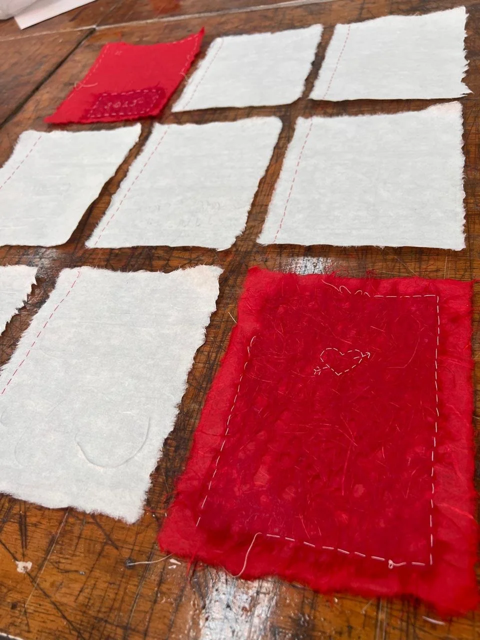 nove lâminas de papeis japoneses bordadas e impressas com relevo seco