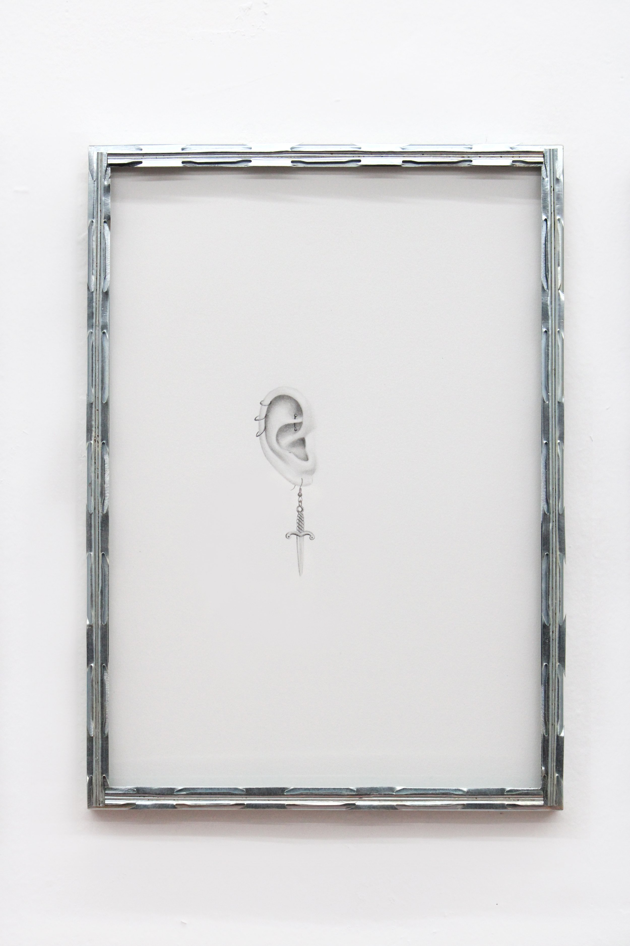 Hematomas é composta por nove desenhos feitos com grafite sobre papel, emoldurados com rede laminada galvanizada de aço. Cada desenho retrata partes do corpo do artista que passaram por modificações corporais — como piercings e tatuagens — evocando um sentimento de encarceramento identitário, ao mesmo tempo que tangencia o erotismo, o fetiche e o desejo.